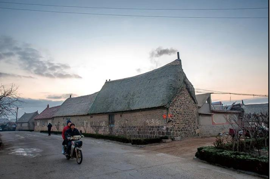 玫瑰色跟天青色衔接糅合的晨曦里,炊烟袅袅从海草房上方的烟囱升起,渔村烟火气息的一天开始了。清早看海草房,仿佛屋顶至壁角氤氲在祥睦的暖光中,银灰色的海草棵棵都带着温度。