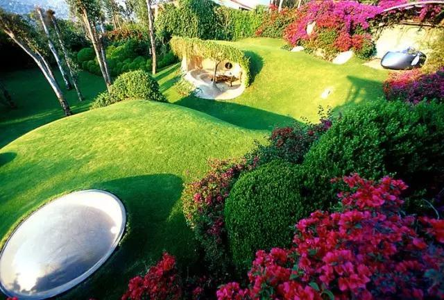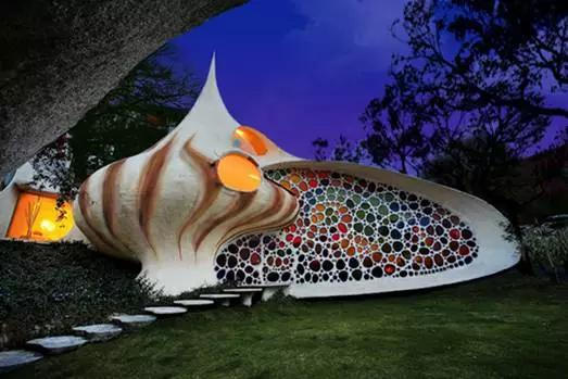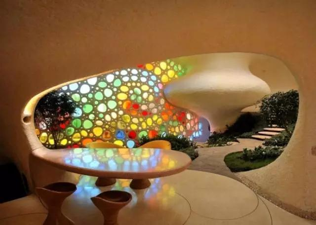 绿植围绕的小小休憩区,配合色彩斑斓的窗是不是很romantic。造型各异的浴室、卧室、影音室和厨房仿佛长在鹦鹉螺身上一样。小小的鹦鹉螺内有乾坤,功能一应俱全。
