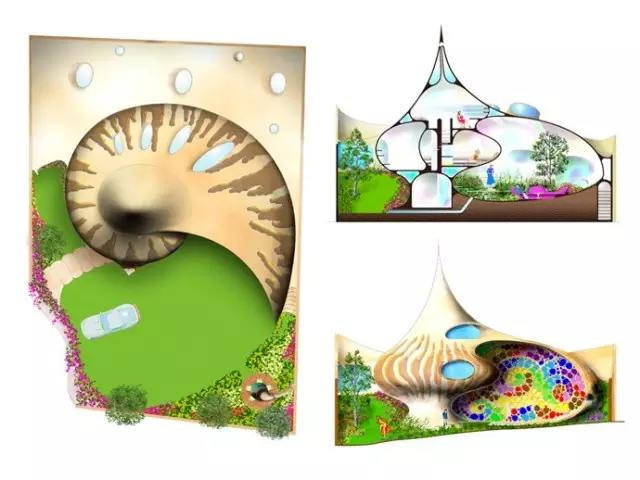 仔细瞧一瞧图纸,是不是感觉从内到外都仿造了鹦鹉螺的构造,散发着浓浓的仿生味道。设计师解释说:“鹦鹉螺房屋中的每层空间都采用对数螺旋形建造,建模过程中也曾做过多次调整来找到更为适合的建筑体积。”