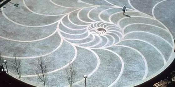 这是辛辛那提校园规划其中的一处广场设计,采用了鹦鹉螺这一特殊自然形,鹦鹉螺是分形图形的一种,人行走于其中非常奇妙,仿佛有一股巨大的张力将你吸入其中。